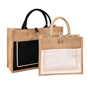 レトロな創意の黄麻の手提げ袋は記念の贈り物の袋の企業の広告の大容量をつづり合わせて街のハンドバッグの卸売りを出します。