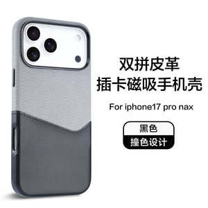 新型ツートンカラー iPhone17ProMax用スマホケース 布地風レザー 磁気吸着 Apple15対応 耐衝撃保護