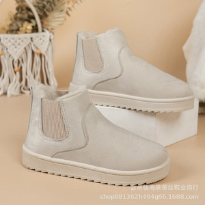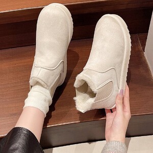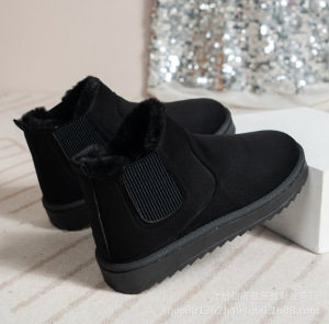 外国貿易の新型秋冬の雪地の靴の女性の保温の純色の大きいサイズの毛の綿の靴のゴムは厚い底の短い筒の綿の靴の女性を持ちます。