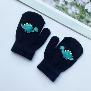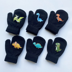 亚马逊欧美幼儿园儿童恐龙卡通图案手套保暖毛线手套印刷针织手套