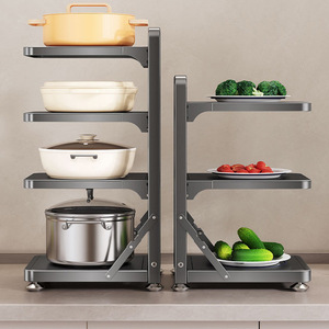 台所の物置棚の鍋の収納棚の戸棚の中の階層の戸棚の多層の台の下の水槽の鍋の棚は鍋の棚を置きます。
