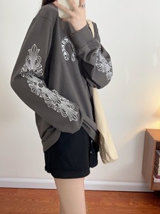 24 クロスボーダー人気クロメ高品質双糸純綿男性と女性のプリント長袖 T シャツ男性と女性のための同じスタイル