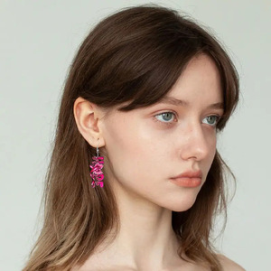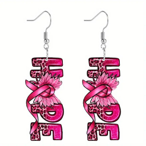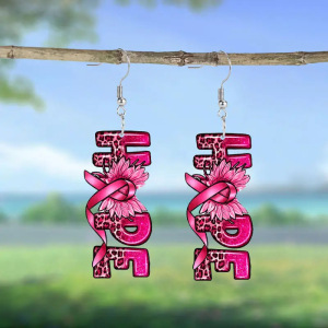 クロスボーダーの人気ピンクの蝶結びはアクリルのイヤリングが積極的な態度のヒョウのアルファベットのイヤリングを意味することを望みます。
