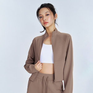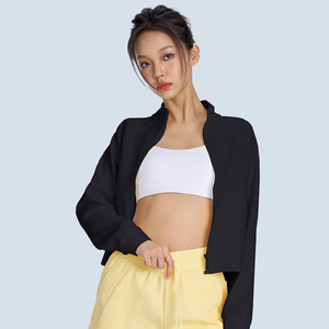 秋の新作スリムヨガジャケット、ポケット付きアウトドア、スタンドカラースポーツトップス、カジュアルフィットネスウェア