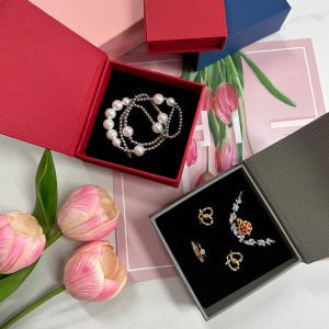 メーカーの現物の高級なカバーをひっくり返して、磁気は本の型の箱のアクセサリーの贈り物の箱の指輪のイヤリングのネックレスの収納の箱の卸売りを吸います。