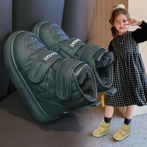 女の子用綿靴2025冬新作、裏起毛で暖かい子供用ショートブーツ、中高生用スノーブーツ、男の子用おしゃれ綿靴