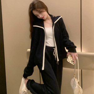 ワッフルファッションのスポーツスーツの女性は春と秋にゆったりしていて、やせています。