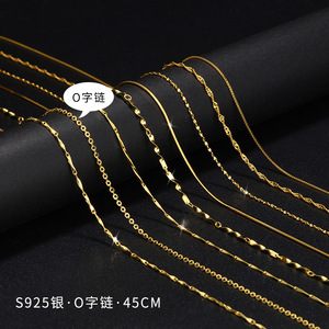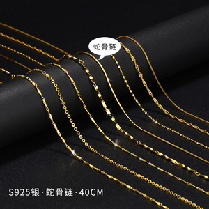 本場18k金ネックレス女925純銀メッキ黄金色チェーン彩金素チェーン細い裸チェーン鎖鎖鎖鎖無ペンダント