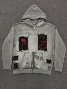 スポット欧米2024街頭Y2K悪魔プリント水洗いして古い重ポンド男女ゆるい帽子付きガーディアン卸売り