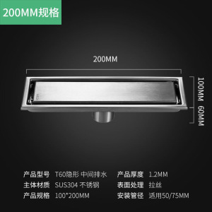 クロスボーダー304ステンレス製隠し長方形排水溝、金色の隠蔽型延長排水溝、バルコニーと浴室の防臭