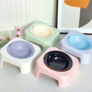 BD 猫ボウル セラミック マカロン 高価値 猫用食事缶詰 猫用丼 飲料水 首の保護 身長を伸ばす 転倒防止ボウルスタンド