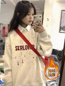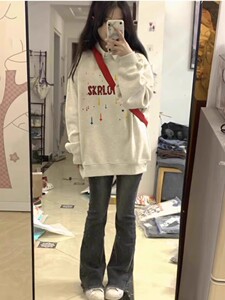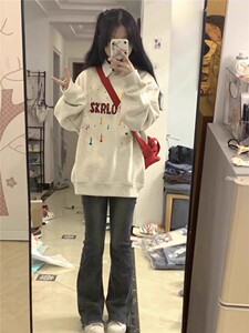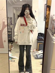 アメリカのレトロで怠惰な長袖の丸首の衛衣の女性2024春秋のゆったりしている大衆のデザイン感のファッションブランドの上着