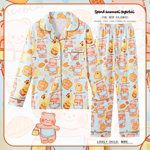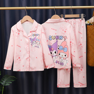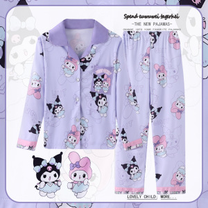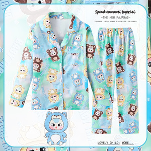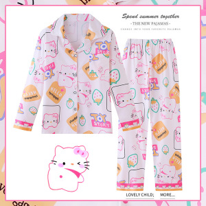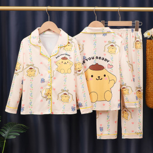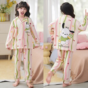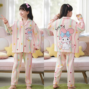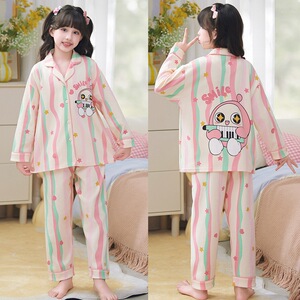 韓国の子供のパジャマの女の子の春と秋のカーディガンの長袖の中で大きい子供のかわいい女の子の甘い家の服は外で着ます。