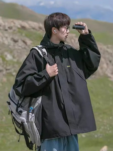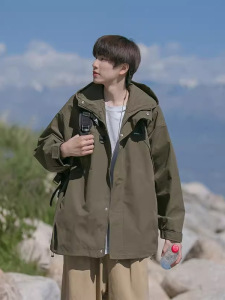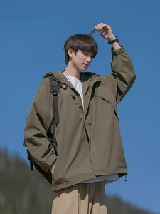 春秋新款工装冲锋衣机能夹克男秋季潮牌宽松休闲连帽外套痞帅外套