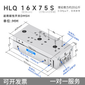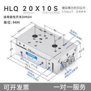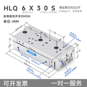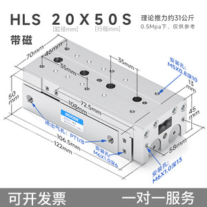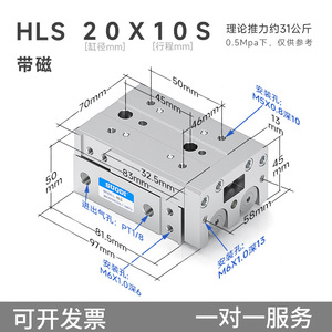 Airtac エアガイドレールスライドシリンダー HLQ/HLS6/8/12/16/20/25X10/20/30S Sotdi