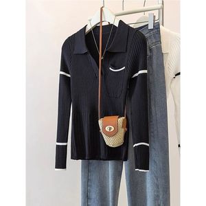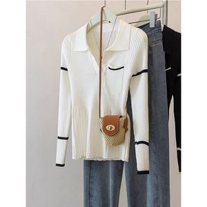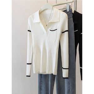 白いpolo襟のニットの底のシャツの女性の秋冬の復古は色の修身の中にセーターを掛けます。