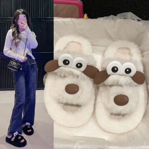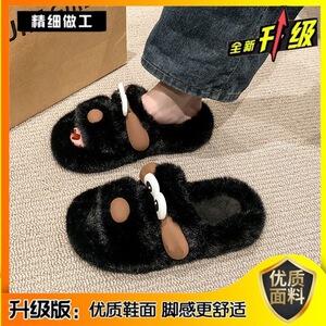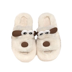 柔らかい萌えかわいい立体犬の毛のスリッパの女性は2024年秋冬の厚い底に合わせて滑り止めの外に漫画の綿を着ます。