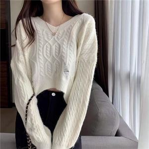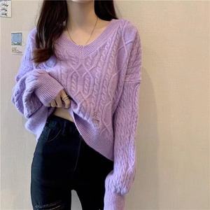 2024年麻花セーター女装ゆるいプルオーバー秋冬の外着カジュアルなニットウェアの上着を着ている女性