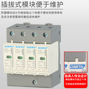 SPD浪涌保护器电涌三相家用防雷器220V光伏避雷模块一级防雷器