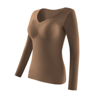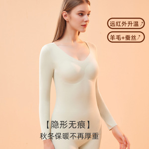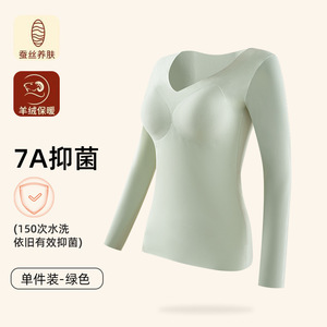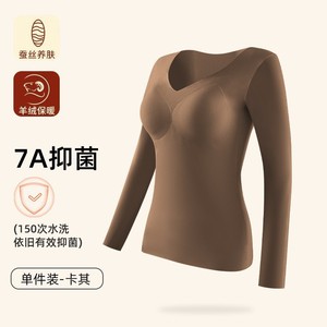 依帆泰羊绒长袖女保暖内衣套装秋冬固定杯锁温发热打底衣双面磨绒