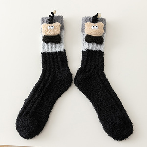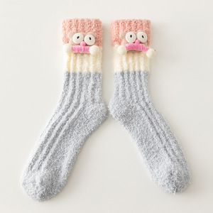 珊瑚の毛の靴下の女性の秋冬のベルベットの厚い保温の睡眠の靴下のかわいい漫画の中の筒の家の床の月子の靴下