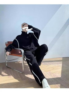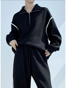 ヨーロッパ駅の秋冬の新型の百合ファスナーの高襟のガードルの腰の長いズボンのゆったりしている黒色のレジャーのスポーツのスーツの女性