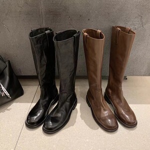 【sheii苏茵茵】重工水洗靴~马皮后拉链粗跟中高筒长靴女骑士靴