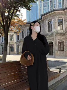 ロングレイジースタイルラペルニットドレス2025秋冬新デザインレディースツイストセーターボトムスカート
