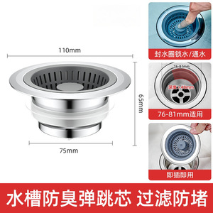 台所の洗面器の水漏れプラグの食器洗い池の水槽の水栓の部品の防臭のバウンスフィルターの神器