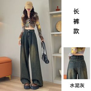 セメントの灰色のレトロな広脚のジーパンの女性の新型の小さい背の高い腰は明らかにやせています。