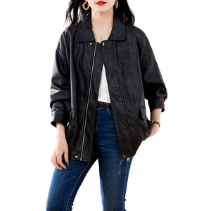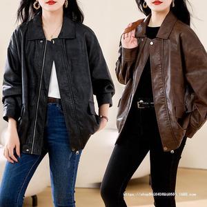 レトロブラウン羊革レザージャケット レディース ショート丈 2025秋冬 韓国風 ゆったり レザージャケット シックなバイクジャケット