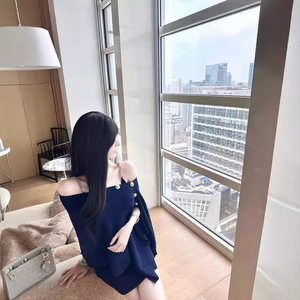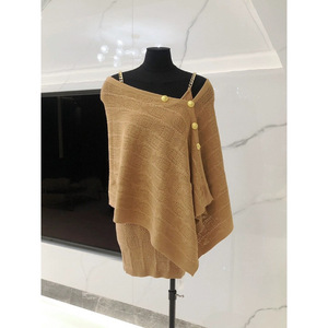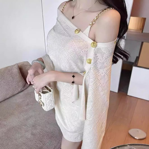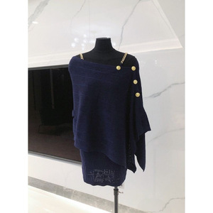 一字の肩の不規則なストールの千金風のニットのマントの上着の気質の金のチェーンのサスペンダーのワンピースの2つのセット