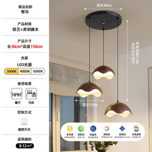 食堂灯レトロ胡桃木目中古風新中国式禅意茶室カウンターシャンデリア三頭食堂食卓灯