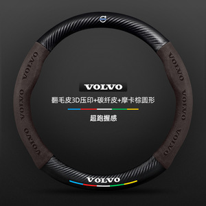 スエード 3D エンボス カーボンファイバー レザー モカ ブラウン ラウンド ボルボ ロゴ
