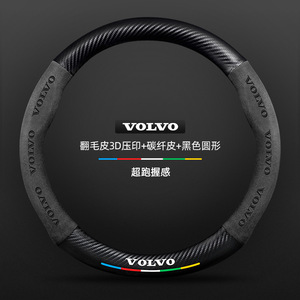 スエード 3D エンボス カーボンファイバー レザー ブラック ラウンド ボルボ ロゴ