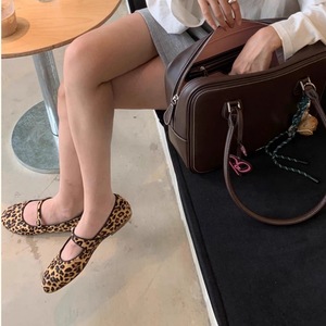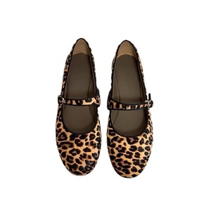 羊皮版 ~ 韓国版小衆豹紋本革一字ボタン付きシングルシューズ女性フラットミルク靴バレエメアリー珍靴