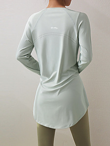 長い運動tシャツの女性のゆったりした版はお尻を遮ってお尻をかぶせてランニングします。