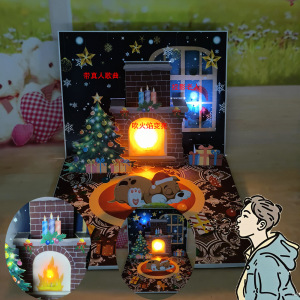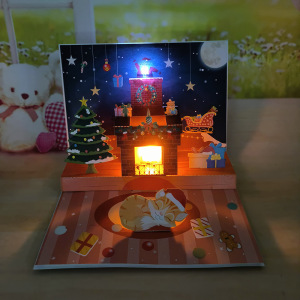 クリスマス猫が炎を吹いて明るくなる音楽と光の投影 24.9.15