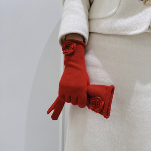 韓国系の甘い立体手作りのバラのニットの毛糸の手袋は全部分けてタッチパネルの女子学生の冬の保温を指します。