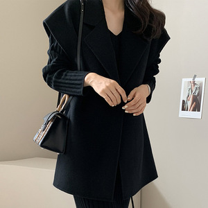秋冬レトロ感のあるスーツの両面にウールがあります。
