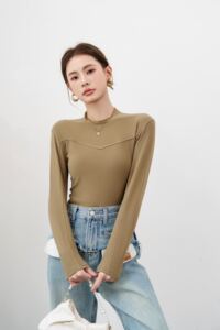 女性用カシミヤシルクスタンドカラーボトリングシャツ