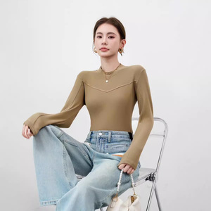 カシミヤのシルクの立襟の底のシャツの女性の新型の韓国版のデザイン感の修身のゆったりしている高弾は大きいサイズのココナッツの上着をプラスします。