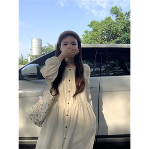 韓国風プリーツ長袖ドレス女性のための春と秋 2025 新しいデザインハイウエストルーズロング A ラインスカートトレンディ