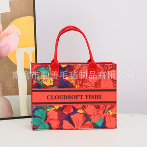 卸売りフェルトバッグネット赤いフェルトハンドバッグデパートバッグプリントフェルトショッピングバッグのお土産バッグはロゴを印刷できます