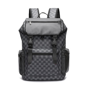 かばんの流行の韓国版のカジュアルなリュックサックの格子puのプリントのリュックサックは水の耐摩耗性の大容量のコンピュータのカバンをかけます。