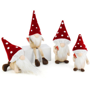 新商品のクリスマスプレゼントに顔のない人形のキノコのルドルフクリスマスの経典の赤いキノコの頭の小人の置物があります。
