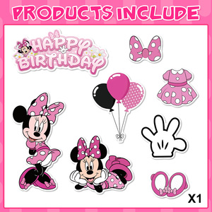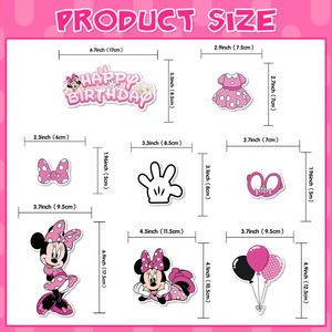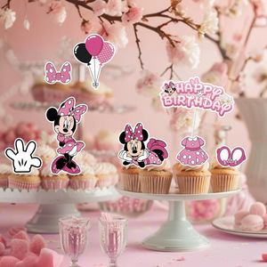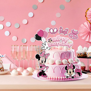 ミニーのテーマの甘い女の子の蝶結びの子供のケーキは旗を挿して誕生日のパーティーのシーンの配置の道具を挿します。