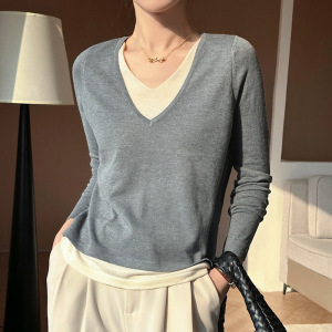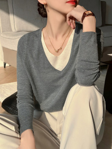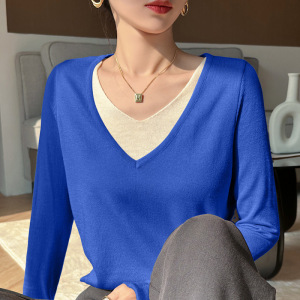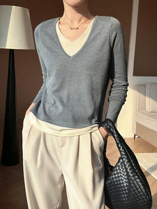 重ね着の法則の精紡のウールのシャツのvネックは色にぶつかって頭をつづり合わせます。