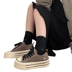 女性用本革厚底スニーカー2024秋ラウンドトゥスエードカジュアルシューズ身長を伸ばすプラットフォームシューズキャンバスシューズカジュアルで多用途