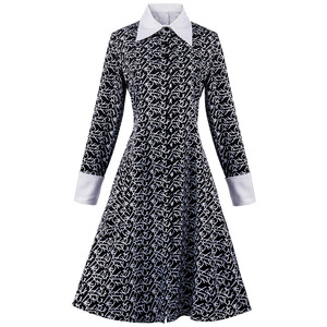 全キャラクターの映画とテレビの黒いワンピースのプリントのダンスのスカートのコスプレの服装の女性
